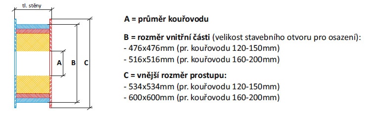 Prefabrikovaný prostup izoluje kouřovod 120-200mm od spalné konstrukce příčky. Prostup je složen ze dvou vík s rámečkem a minerální izolace kouřovodu.