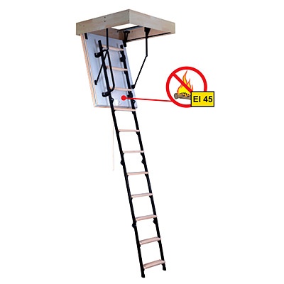 Skládací schody Mini EI45 mají protipožární izolaci o tloušťce 60mm a jsou určeny k výlezu do půdních prostor ve stísněných podmínkách a tam, kde je požadavek na požární odolnost 45minut.