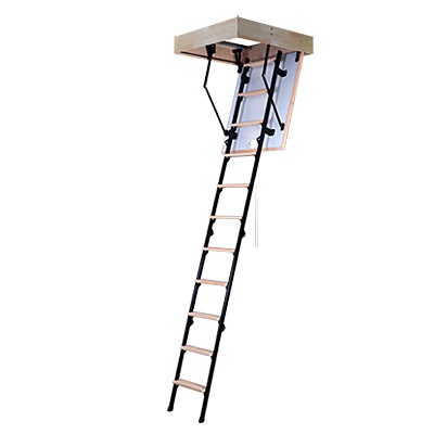 Půdní schody jsou složené ze třech hlavních dílů. Dřevěného rámu o výšce 135mm, zatepleného víka a vlastního žebříku. Zateplené víko s těsněním je oboustranně opatřeno bílou HDF deskou. Na víku je namontován složený čtyřdílný žebřík s ocelovými bočnicemi a dřevěnými nášlapy. Půdní schody jsou opatřeny párem ocelových pružin, které brzdí pád při otevírání a napomáhají při zavírání.