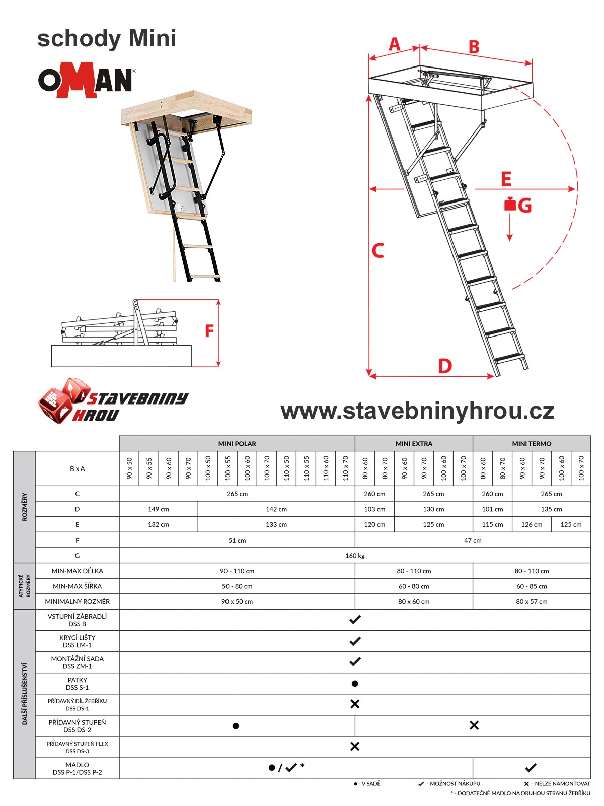 Půdní schody Oman Mini Termo Rozměr: 600x800mm