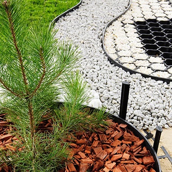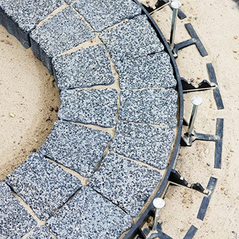 Skrytý obrubník se používá k ohraničení plochy ze zatravňovací nebo zámkové dlažby. V zahradách k ohraničení ploch s různým materiálem (mulčovací kůra / kamenivo apod.) Obrubník lze použít jako rovný, nebo se tvaruje do oblouků.