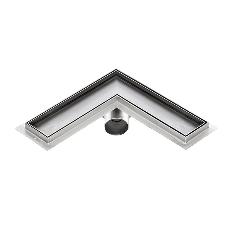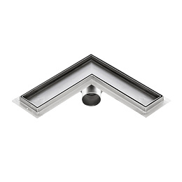 Sprchový žlab je lomený, má dvě ramena a používá se ve sprchových koutech jako rohový žlab a osazuje se do podlah o minimální výšce 65mm včetně dlažby.