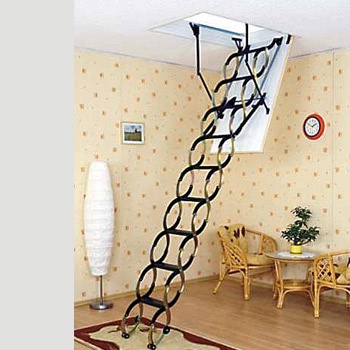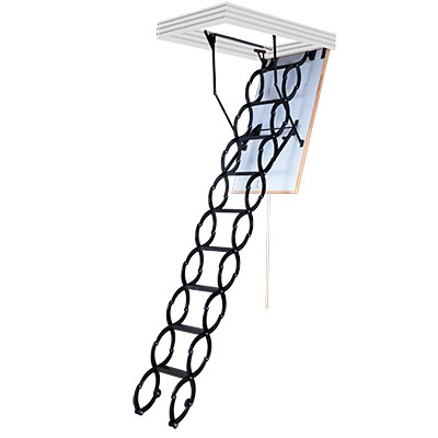 Stahovací schody Flex Termo - Metal Box se na první pohled liší použitím nůžkového žebříku namísto skládacího. Stahovací schody jsou určeny k výlezu do půdních prostor v rodinných domech, skaldech a provozovnách.