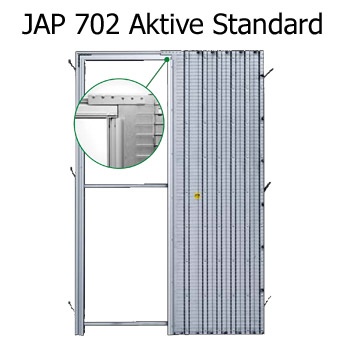 Stavební pouzdro JAP 702 Aktive Standard se skládá z těchto části: plechový box pro dveře, nadpraží s pojezdovou kolejnicí a pohledovou stojku. Pojezdové vozíky, dorazy a držáky dveří se dokupují zvlášť v závislosti zda zamýšlené dveře budou dřevěné (max.tl. 40mm) nebo celoskleněné.