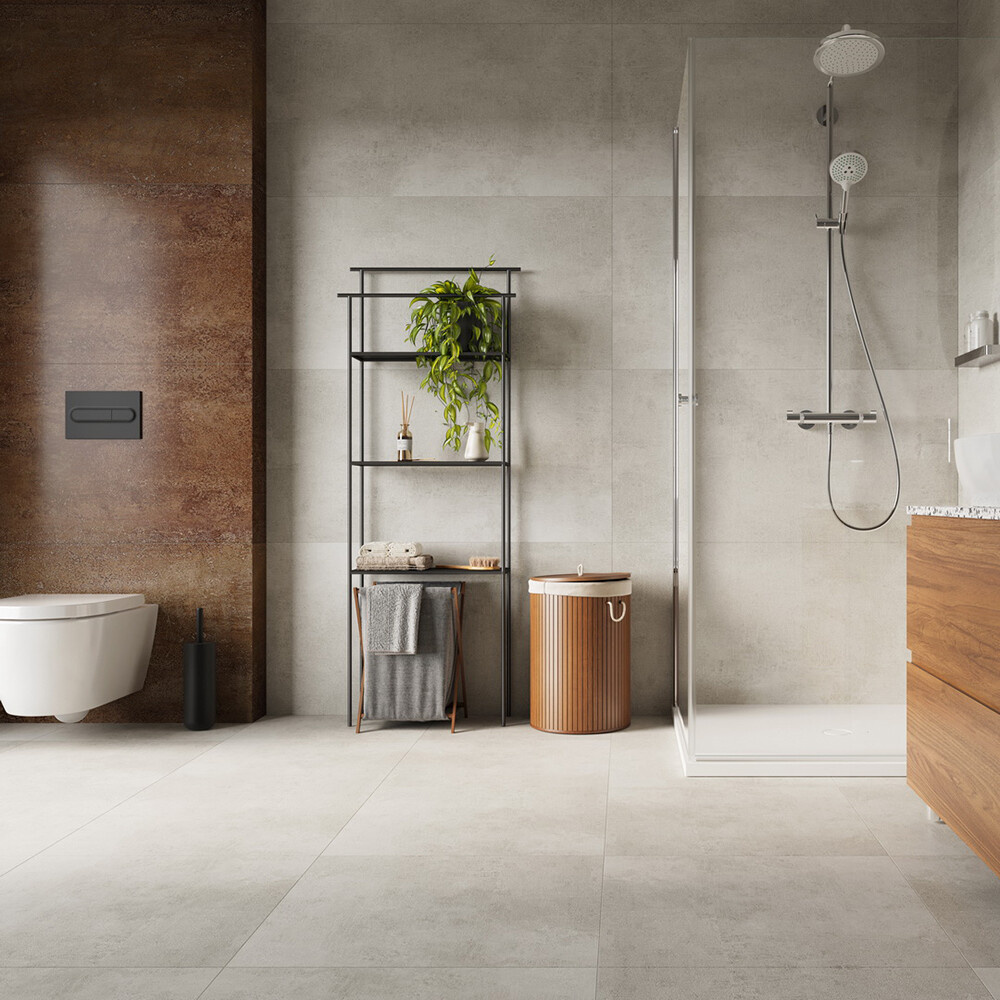 Vinylová podlaha Vilo SPC Concrete Dust, je určená k bezespáré pokládce podlahy v interiéru jako dlažba. Je vhodná pro místnosti s vysokým provozem a zejména do míst s kontaktem s vodou, jako jsou koupelny, kuchyně, toalety. Výhodou je, díky zámkovému systému bezesparý povrch, odolnost proti otěru a protiskluzný povrch. Podlaha Vilo SPC je vyrobena unikátní technologií spojující kamenný prášek a pryskyřici. Tím vznikne jádro kompozitní desky SPC (Stone Polymer Composite). Na toto jádro je tištěn dekor, který je následně pokrytý UV odolnou vrstvou. Podlahy Vilo SPC se dodávají v provedení sametový mat.