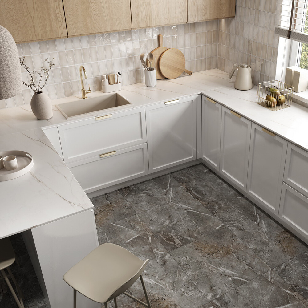 Vinylová podlaha Vilo SPC Marble Skin, je určená k bezespáré pokládce podlahy v interiéru jako dlažba. Je vhodná pro místnosti s vysokým provozem a zejména do míst s kontaktem s vodou, jako jsou koupelny, kuchyně, toalety. Výhodou je, díky zámkovému systému bezesparý povrch, odolnost proti otěru a protiskluzný povrch. Podlaha Vilo SPC je vyrobena unikátní technologií spojující kamenný prášek a pryskyřici. Tím vznikne jádro kompozitní desky SPC (Stone Polymer Composite). Na toto jádro je tištěn dekor, který je následně pokrytý UV odolnou vrstvou. Podlahy Vilo SPC se dodávají v provedení sametový mat.