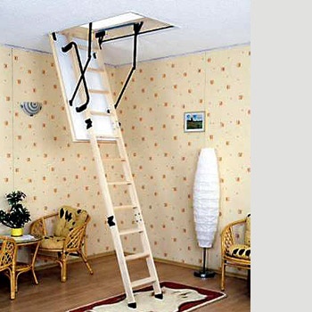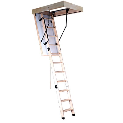 Půdní schody jsou celodřevěné složené ze třech hlavních dílů. Dřevěného rámu o výšce 170mm, zatepleného víka a vlastního žebříku. Zateplené víko s těsněním je oboustranně opatřeno bílou HDF deskou. Na víku je namontován složený třídílný žebřík a madlo po levé straně. Půdní schody jsou opatřeny párem ocelových pružin, které brzdí pád při otevírání a napomáhají při zavírání.